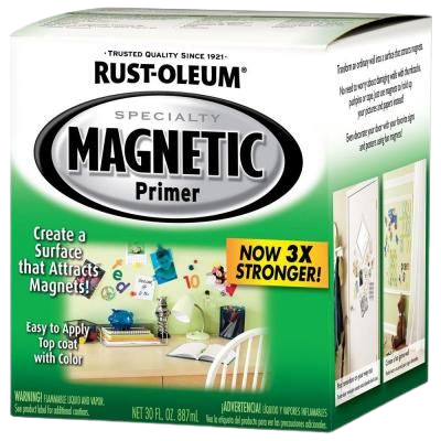Rust-Oleum® Specialty Magnetic Primer creates a magnet-attracting base on a wide range of interior surfaces. Its light grey finish can be top-coated in any colour or paired with Chalkboard Paint to create a magnetic chalkboard—now 3× stronger for improved magnetic strength.